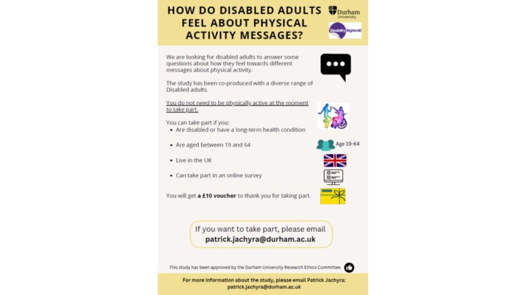 A team from Durham University are looking for participants to complete an online survey. To see a larger version of the poster click here